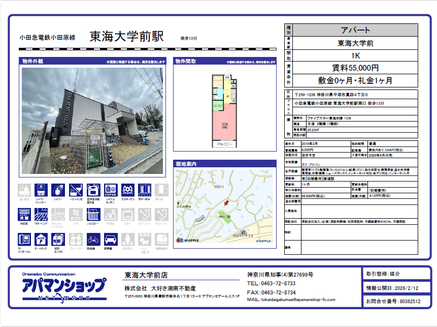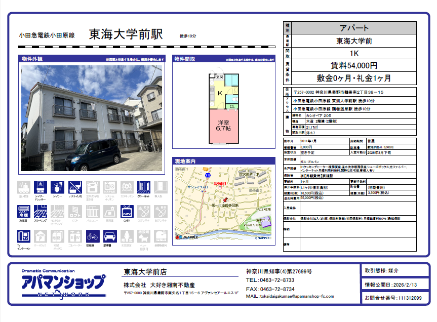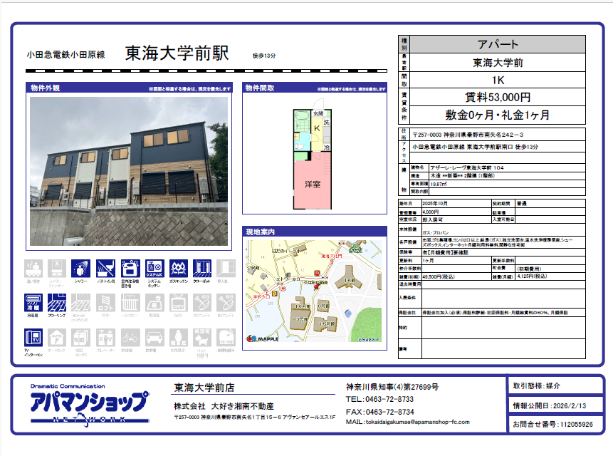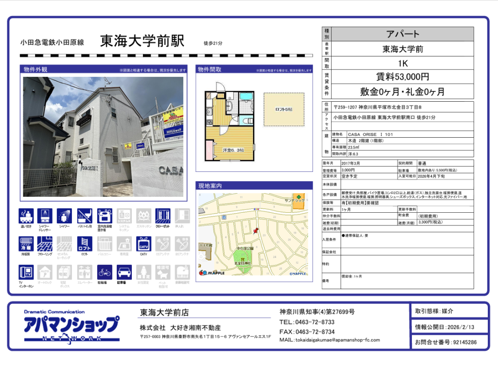物件台帳と建物名が異なりますが、同じ物件なので安心してください!この物件は東海大学北門が目の前にある物件です!お部屋にはロフトがあり、開放的な空間になる事間違いなし!