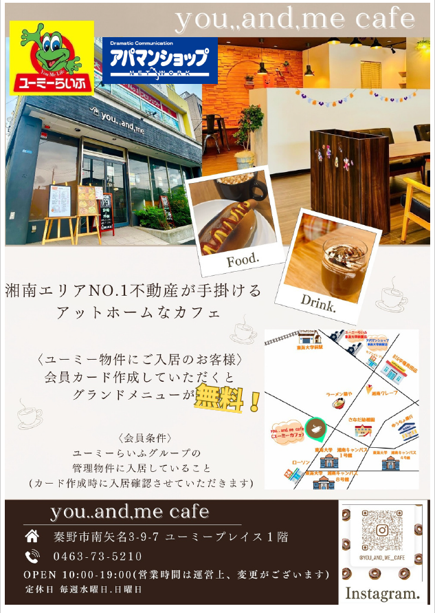 東海大学から徒歩2分のユーミーカフェでは、ご入居者様限定で以下のメニューを無料でご提供しています✨