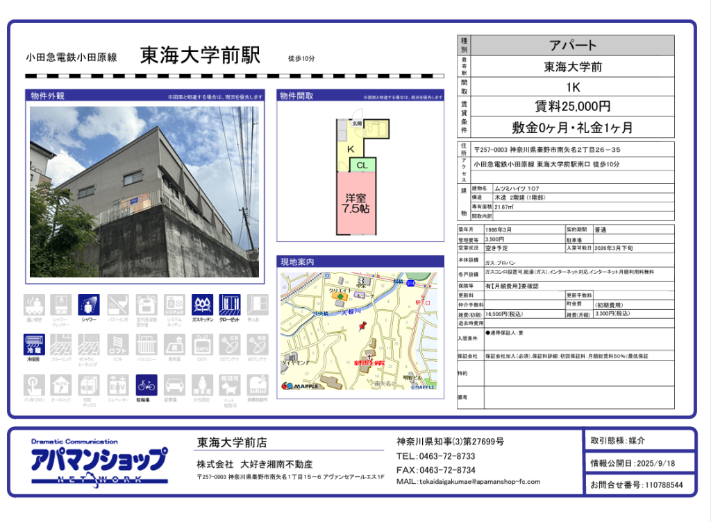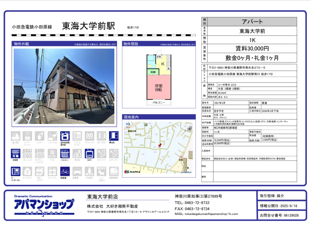 こんにちは!!アパマンショップ東海大学前店です